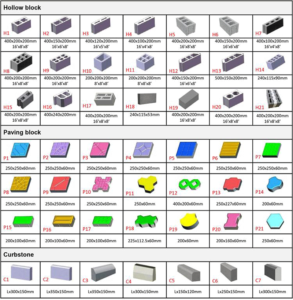 The following production capacities are for some popular sizes of blocks, bricks, hourdis and interlocking pavers.