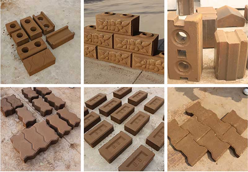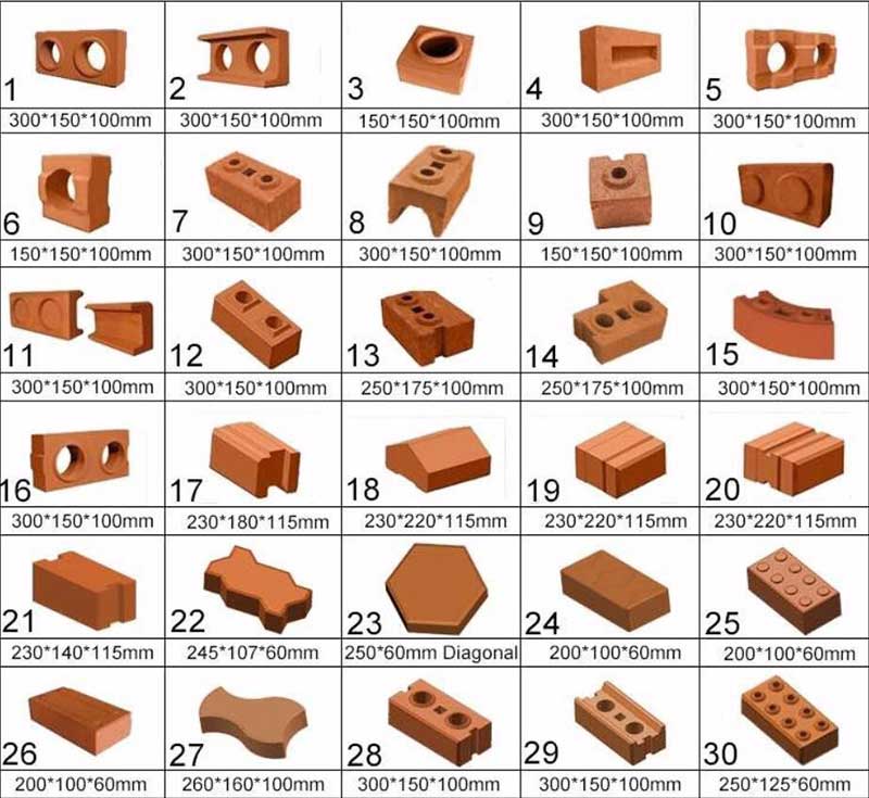 By changing molds, QT2-25 diesel powered hydraulic soil clay interlocking lego brick making machine can produce different sizes of lego bricks, hydraform block, earth compressed blocks, ISSB bricks, interlocking pavers, ecological bricks,the following are some designs of bricks for your reference.